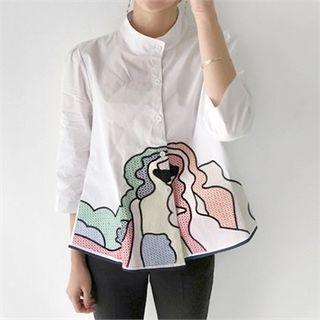 Brand from South Korea: TOM TOM TOM. Color: Ivory, Navy Blue, Materials: 65% Polyester, 35% Cotton, Size: One Size: Shoulder 37cm, Bust 101cm, Sleeve 44cm, Sleeve Circumference 35cm, Total Length 57~63cm, Care: Dry Clean