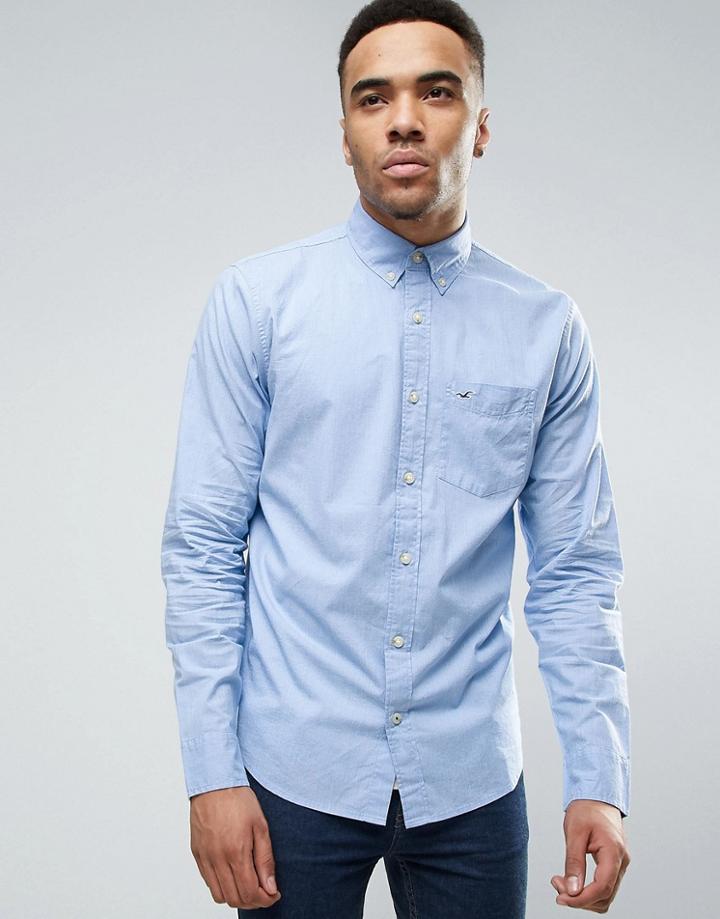 - Hollister Poplin Icon Seagull Logo Button Down Collar Stretch Slim Fit Pocket Shirt In Blue Marl - Blue