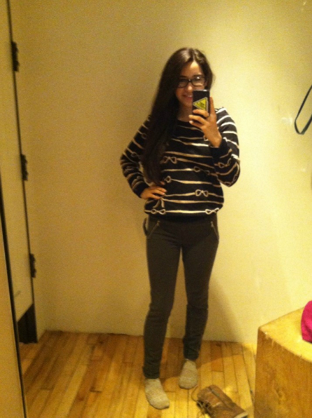 I treated myself to some retail therapy today! Got some awesome army green jeans embellished with zippers and an adorable sweater with cute bow details. I love mixing green with light pink… so vintage!