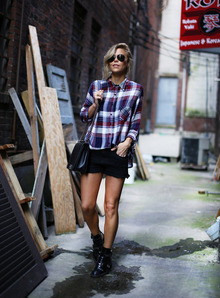 FREE PEOPLE - LITTLE BIT OF SUGAR PLAID SEQUIN TOP (NAVY COMBO)