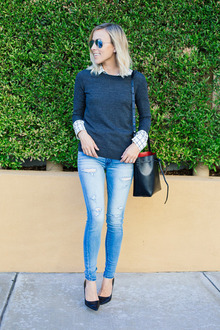 I swear it was a mission to come up with an outfit in this 85 degree weather. Not that I'm complaining, but seriously...I'm not ready. I've realized I have too many cardigans and sweaters and totally disregarded updating my closet with sleeveless tops. With that being said, I decided to focus on these pastel colored shoes. When in doubt, work your outfit around the shoes. Colored heels add a special touch to your look. Whether you pair them with jeans or a pencil skirt, they make an outfit look effortless.