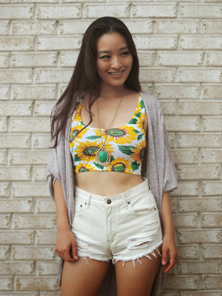 Sigh, I'm so sad that summer's coming to an end. I had so much fun wearing dinky crop tops and high-waisted minis. I guess it's time to trade them in... or is it? *evil laughter* It's still warm out, so imma keep featuring summery looks, but I'm sure the layering will start in the not-so-distant future, ha! Anywho, who here is a fan of sunflower prints? I saw this adorable number on the OASAP site, and I just HAD to have it!