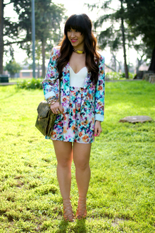 I am so in love with the floral pattern and the vibrant colors of this skirt! Between the colors and the print, it is so “on trend” for spring and summer! I paired it with this sheer peach top and matching bandeau underneath. This top would also look great with some skinny jeans and cute wedges....kinda like the ones I'm wearing ;) They are made by Seychelles so you know they are unbelievably comfortable. The color is unexplainable, kinda orange, kinda mango or peach, just a fun color to add to your shoe collection. The wooden wedge adds comfort, style and gives that summery feel.