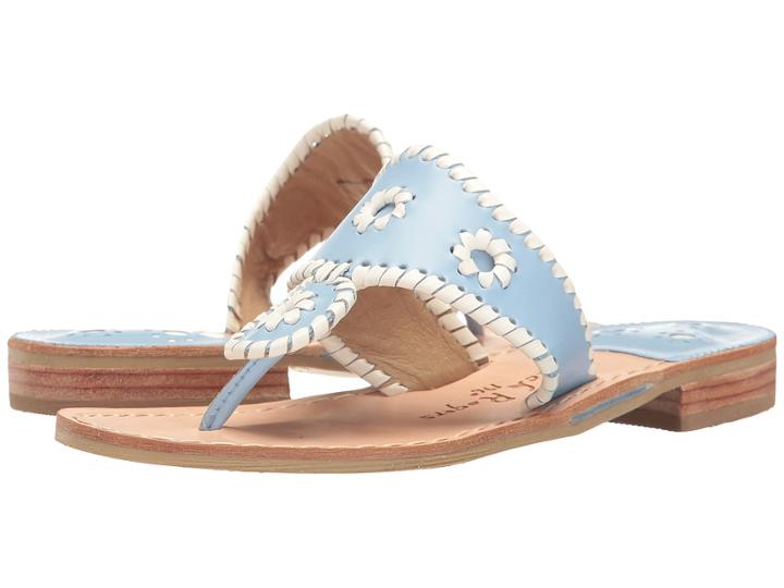 Slip into the fresh and chic style of the Pretty in Pastel sandal from Jack Rogers! ; Genuine leather upper. ; Classic contrast whipstitch trim detail. ; Slip-on thong style. ; Leather lining and footbed. ; Low stacked heel. ; Man-made sole. ; Imported. Measurements: ; Heel Height: 3 4 in ; Weight: 6 oz ; Product measurements were taken using size 6, width M. Please note that measurements may vary by size.