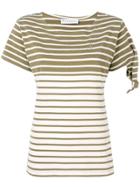 Short sleeve tee from JW Anderson. Allover contrasting stripes. Ribbed crewneck collar. Printed text at front. Straight hem. Jersey 100% cotton Machine wash cold Made in Portugal