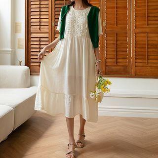 Brand from South Korea: JUSTONE. Color: Black, Cream, Materials: 80% Polyester, 20% Rayon, Size: One Size: Shoulder 38.5cm, Bust 97cm, Sleeve 25.5cm, Arm Hole 48cm, Sleeve Circumference 38cm, Waist 98cm, Total Length 114cm, Care: Dry Clean