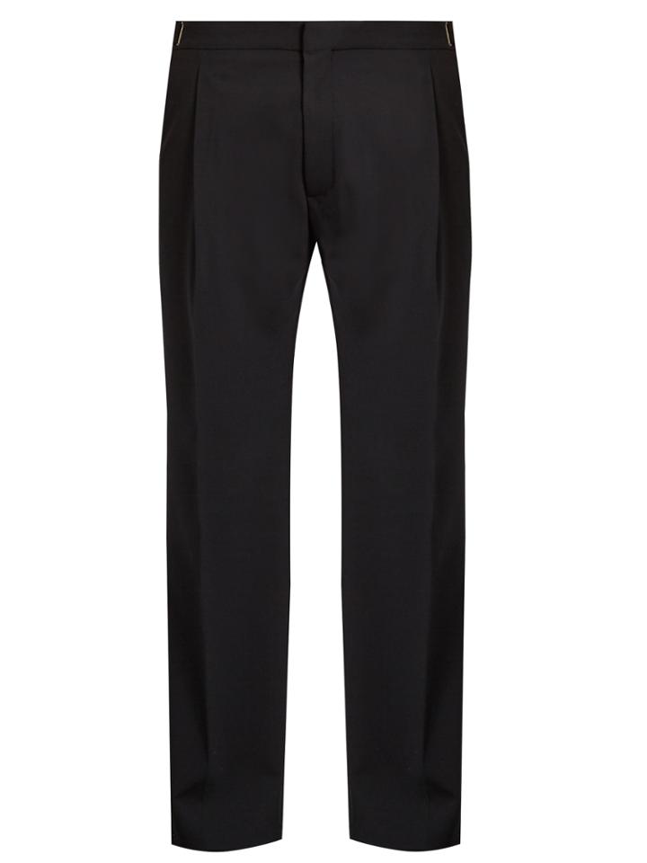Lanvin's dark-navy trousers are tailored from worsted wool to fall relaxed through the leg. They're sharpened with same-tone chain stitching and front pleats and have adjustable hook-fastening side straps that deliver both a personalised fit and contemporary edge.
