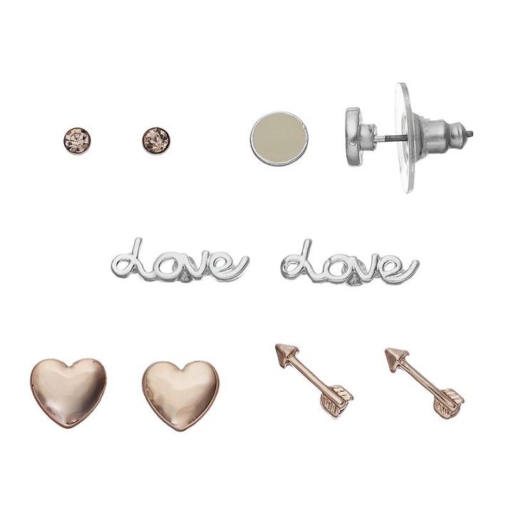 - Lc Lauren Conrad Love, Heart & Arrow Nickel Free Stud Earring Set, Women's, Multicolor