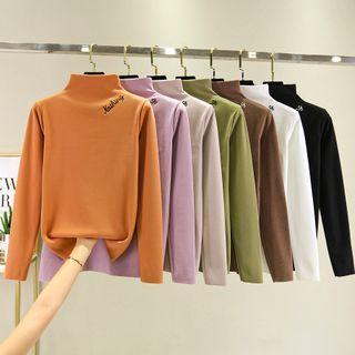 LacylandLetter Embroidered Mock-neck Long-sleeve Top
