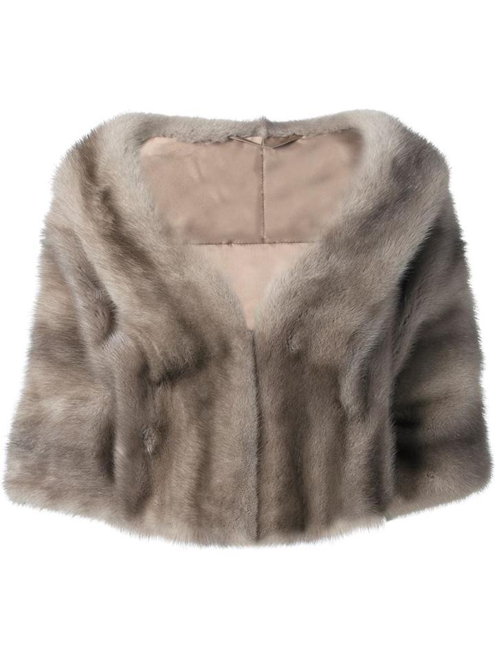Silver-blue cropped mink fur coat from Liska featuring a v-neck, a concealed front fastening and three-quarter length sleeves. Size: L. Color: Nude/neutrals. Gender: Female.