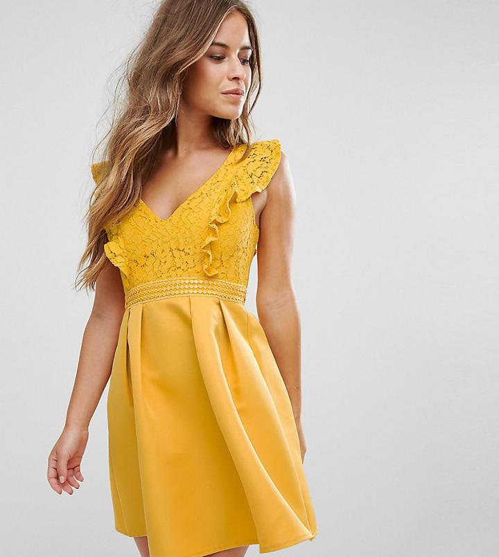 Little Mistress PetiteLittle Mistress Petite Frill Lace Top Mini Prom Dress - Yellow