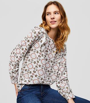 LoftLoft Antique Medallion Ruffle Shoulder Blouse