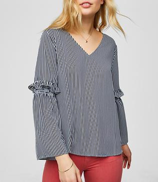 LoftLoft Striped Ruffle Bell Sleeve Blouse