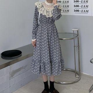 ZenmeLong-sleeve Lace Panel Floral Print Dress