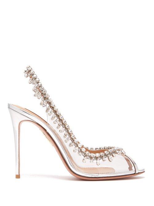 Matchesfashion.comMatchesfashion.com Aquazzura - Temptation 105 Crystal Drop Pvc Slingback Heels - Womens - Silver