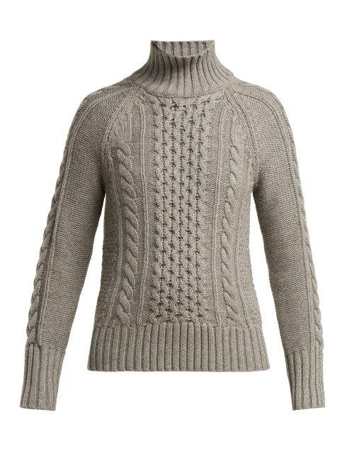 Burberry - Burberry's mastery of classic winter pieces is illustrated by this cosy grey Awakino sweater, which echoes traditional aran styles. It's cable-knitted from mid-weight cashmere with a high neck and raglan sleeves, then finished with long ribbed edges. Watch it integrate seamlessly into your cold-weather wardrobe by teaming it with black wide-leg trousers. 100% CASHMERE