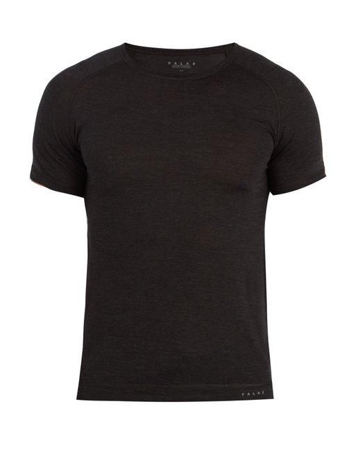 Matchesfashion.comMatchesfashion.com Falke Ess - Crew Neck Wool And Silk Blend T Shirt - Mens - Dark Grey