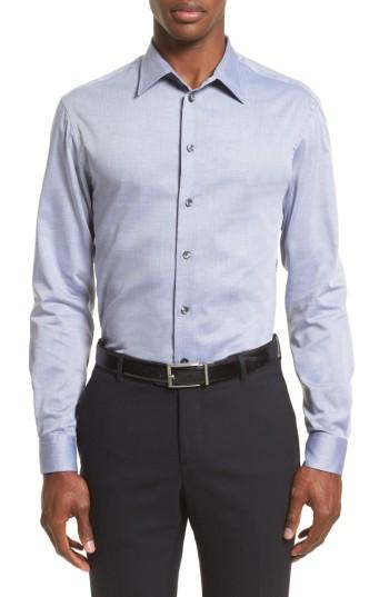 Armani CollezioniMen's Armani Collezioni Regular Fit Herringbone Sport Shirt - Blue