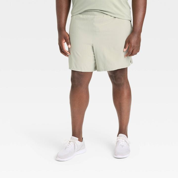 Why we're ALL IN: Solid-colored, loose-fit shorts made with a moisture-wicking, fast-drying fabric are designed to help keep you dry and cool while exercising. They have plenty of stretch for effortless movement, as well as a UPF 50+ rating for reliable protection against harmful UV rays. The elasticized pull-on waist offers a comfortable fit, zipped side pockets provide a place to stash on-the-go essentials, and the above-knee length with side slits provides increased mobility and ventilation. All in Motion: Made for every move, priced for every day. Size: 2XL. Color: Stone. Gender: male. Age Group: adult. Material: Recycled Polyester.