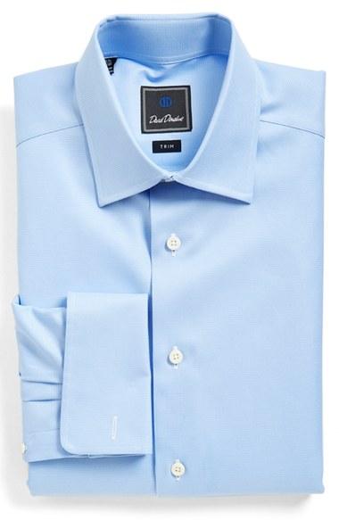 Tailored in crisp, long-staple cotton, a handsomely textured dress shirt is topped with a broad spread collar and finished with a clean French placket and rich French cuffs. Color(s): blue. Brand: DAVID DONAHUE. Style Name: David Donahue Trim Fit Texture Dress Shirt. Style Number: 1160534. Available in stores.