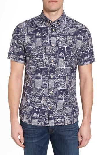 A patchwork print of roiling waves washes over a cotton-blend sport shirt with warm-weather-ready short sleeves. Style Name: Surfside Supply Wave Print Sport Shirt. Style Number: 5544822. Available in stores.