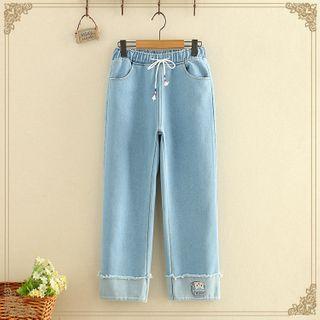 Kawaii FairylandMilk-bow Embroidered Fleece-lined Jeans