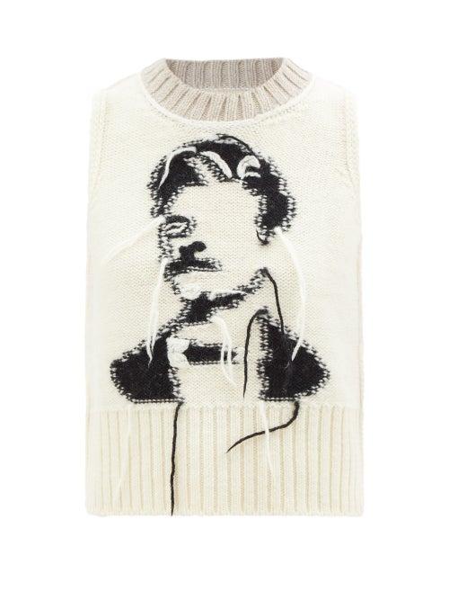 Mm6 Maison MargielaMm6 Maison Margiela - Face-intarsia Wool Vest - Womens - Ivory