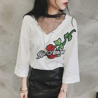 ChampiMock Two-piece Embroidered 3/4-sleeve Top