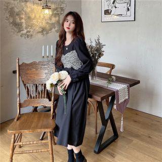 GoustaffoMock Two-piece Long-sleeve Floral Panel Mini A-line Dress