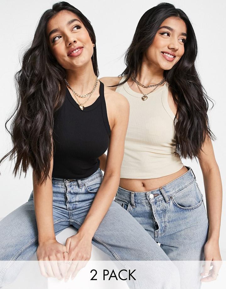 Tank multipack by Monki For the rotation Pack of two Scoop neck Racer back Cropped length Regular fit