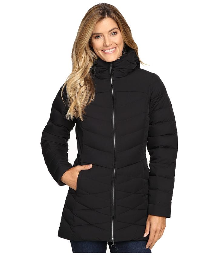 Take your afternoon stroll in this cozy Downtown Metro Coat to get you to your next destination. ; Standard fitted cut that is shaped to skim the body without restricting mobility. ; Q. Shield DOWN circulates heat and stays lofty even when wet. ; Quilted design offers a tailored fit to waist and flares out providing a feminine appeal. ; 700-fill provides maximum warmth without the bulk. ; AirShield finish with 40D 2L Ripstop AXF protection keeping outdoor elements out. ; Two-way front zip closure. ; Attached, three panel hood. ; Long sleeve coverage. ; Inner pockets allow easy access for small essentials. ; Straight front and back yoke offer unrestricted mobility. ; Secure, zip hand pockets. ; Extended droptail hem provides additional coverage. ; Shell: 100% nylon; Lining: 100% nylon; Insulation: 90% duck down, 10% duck feathers. ; Machine wash, tumble dry. ; Imported. Measurements: ; Length: 28 in ; Product measurements were taken using size XS. Please note that measurements may vary by size.