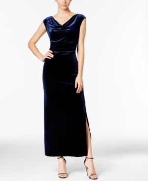 Luscious, season-right velvet creates a luxurious drape on an elegant Msk column gown finished with a sleek side slit for movement.