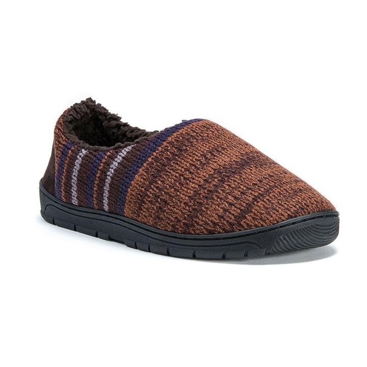 Slip into total comfort with these men's MUK LUKS knit slippers. Shoe Features Knit design Furpa lining Indoor/outdoor sole Shoe Construction Acrylic upper Polyester lining TPR outsole Shoe Details Round toe Slip on Padded footbed Spot clean Imported Size: Large. Color: Brown. Gender: Male. Age Group: Adult. Material: Fur.