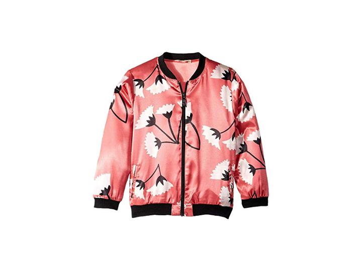 Bloom in every season with the bomber-style munsterkids Mumu Jacket. Stylish polyester jacket features feminine floral detailing for a gorgeous and girly look. Banded collar. Long sleeve construction. Front zipper closure. Dual front slip hand pockets. Banded cuffs and hemline. Branded logo tag at left hip. 100% polyester. Machine wash cold line dry. Imported. Measurements: Length: 22 1 2 in Product measurements were taken using size 12 Big Kids. Please note that measurements may vary by size.