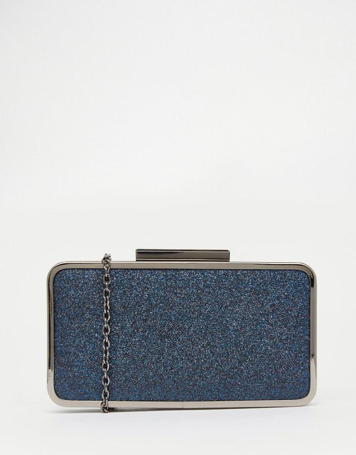 NaliNali Glitter Effect Blue Metal Edge Box Clutch Bag - Blue Glitter