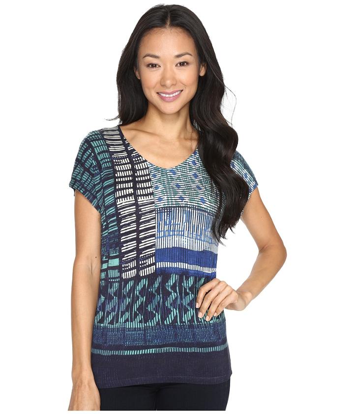 For stylishly sophisticated clothing, Nic+Zoe™ is a consummate choice. ; Short-sleeve top features an eye-catching handpainted pattern. ; Stretch viscose rayon jersey knit fabric. ; V-neckline. ; Straight hem. ; 95% viscose, 5% spandex. ; Hand wash, lay flat to dry. ; Imported. Measurements: ; Length: 24 in ; Product measurements were taken using size SM (US 4-6). Please note that measurements may vary by size.