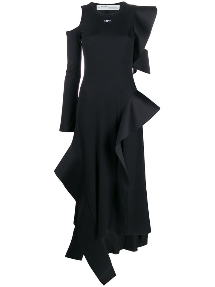 Off-whiteOff-white Ruffled Details Asymmetric Midi Dress - Black