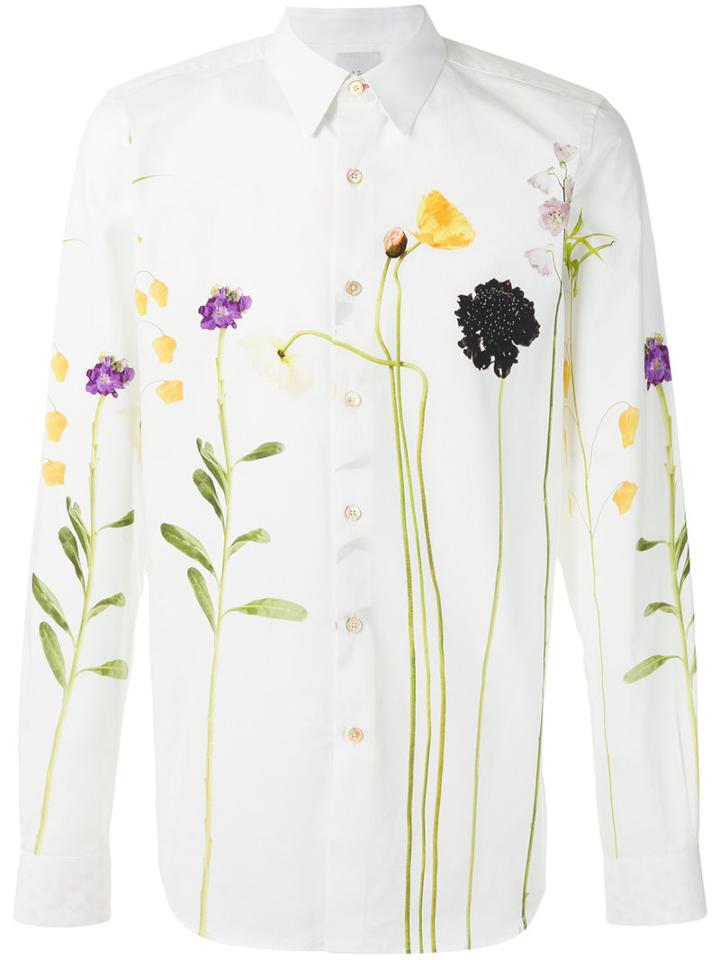 White cotton floral print shirt from Paul Smith. Size: XXL. Gender: Male.