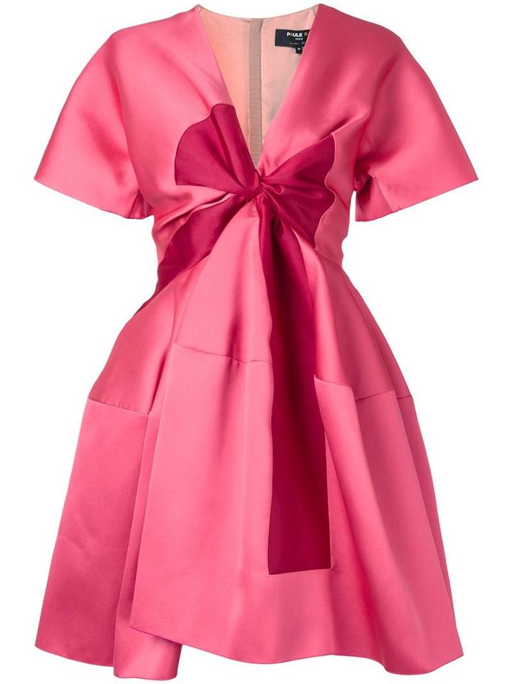 Pink bow detail flared dress from Paule Ka. Size: 38. Color: Pink/purple. Gender: Female. Material: Silk/Polyester.
