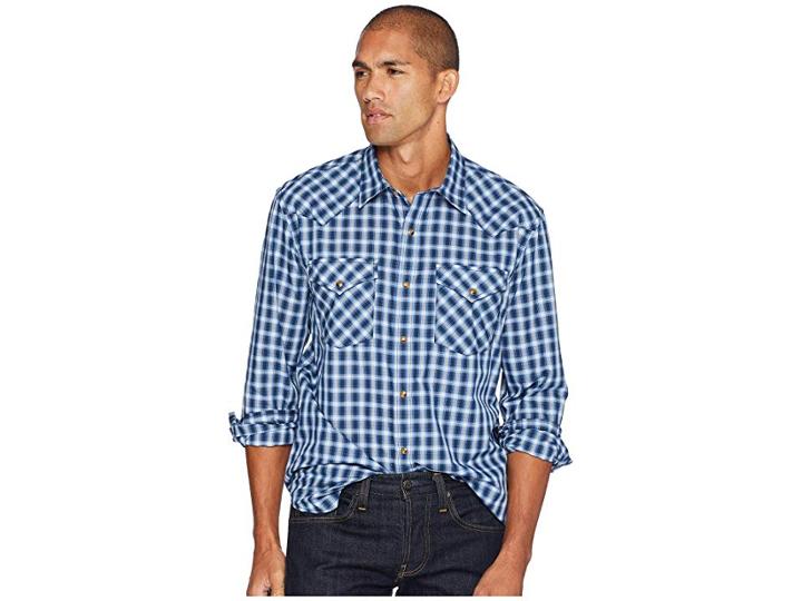 - Pendleton Long Sleeve Frontier Shirt (navy Plaid) Men's Long Sleeve Button Up