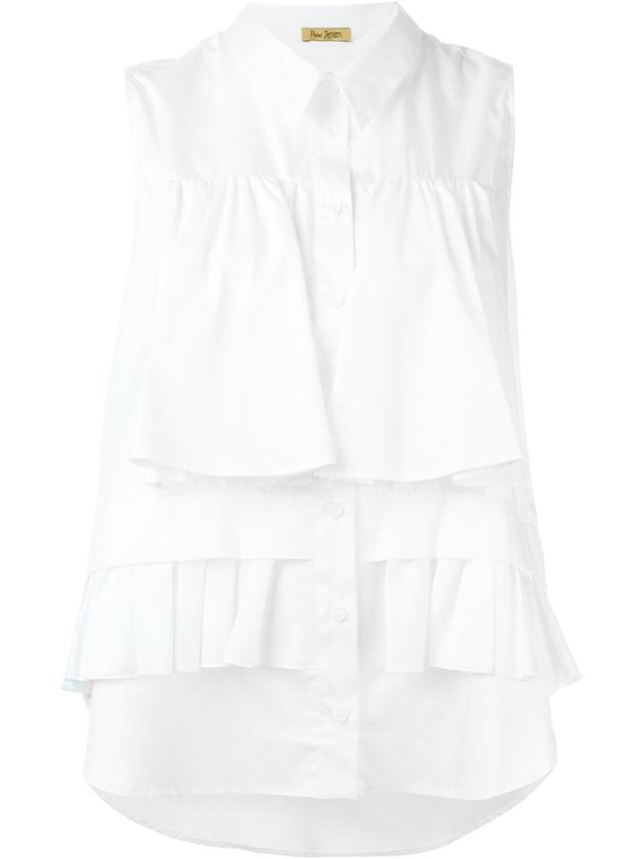 White cotton sleeveless frill blouse from Peter Jensen. Size: L. Color: White. Gender: Female. Material: Cotton.