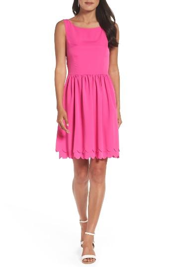 Gathers flare from the comfortable, elastic-smocked bodice into the hem's scalloped tiers, good for accentuating legs. Color(s): hot pink. Brand: ELIZA J. Style Name: Eliza J Fit & Flare Dress (Regular & Petite). Style Number: 5371384 1. Available in stores.
