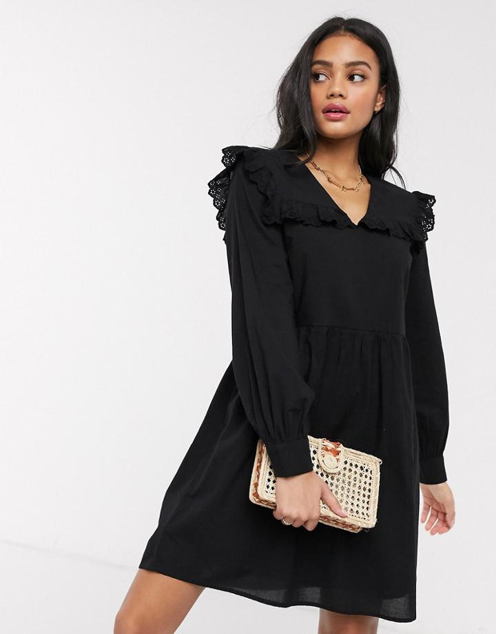 Dress by PIECES Your anywhere, anytime vibe V-neck Broderie, ruffle trims Blouson sleeves Smock style Regular fit True to size