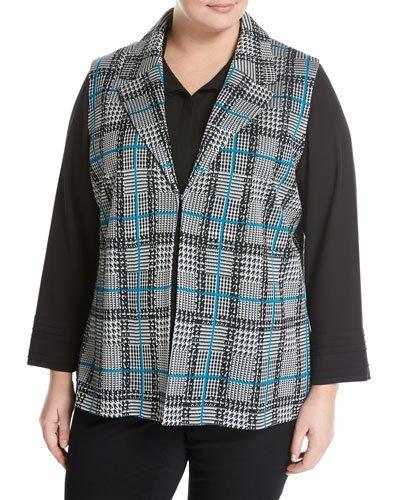 Ming Wang PlusPlaid Knit Vest, Black/white,