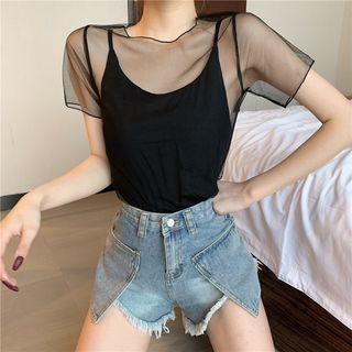 RockbabePlain Camisole / Mesh Short-sleeve Top