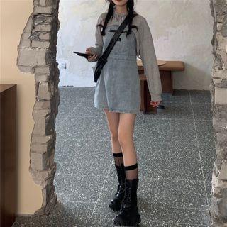 VeryberryPlain Cutout Hoodie/ Denim Strap Dress