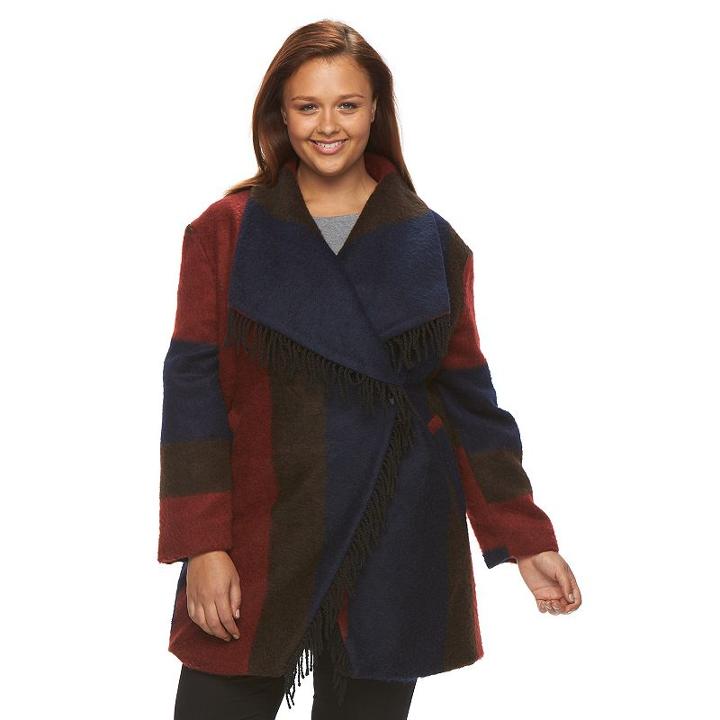 This women's d.e.t.a.i.l.s coat is a chic essential for the cool-weather season. Its plaid pattern and oversized shawl collar with fringe trim combine for an unbeatable look. Midweight wool blend Toggle closure Long sleeves Lined 2-pocket Fabric & Care Polyester, acrylic, cotton, wool, other Polyester Machine wash Imported Size: 1X. Color: Multicolor. Gender: Female. Age Group: Adult. Material: Wool & Wool Blend.
