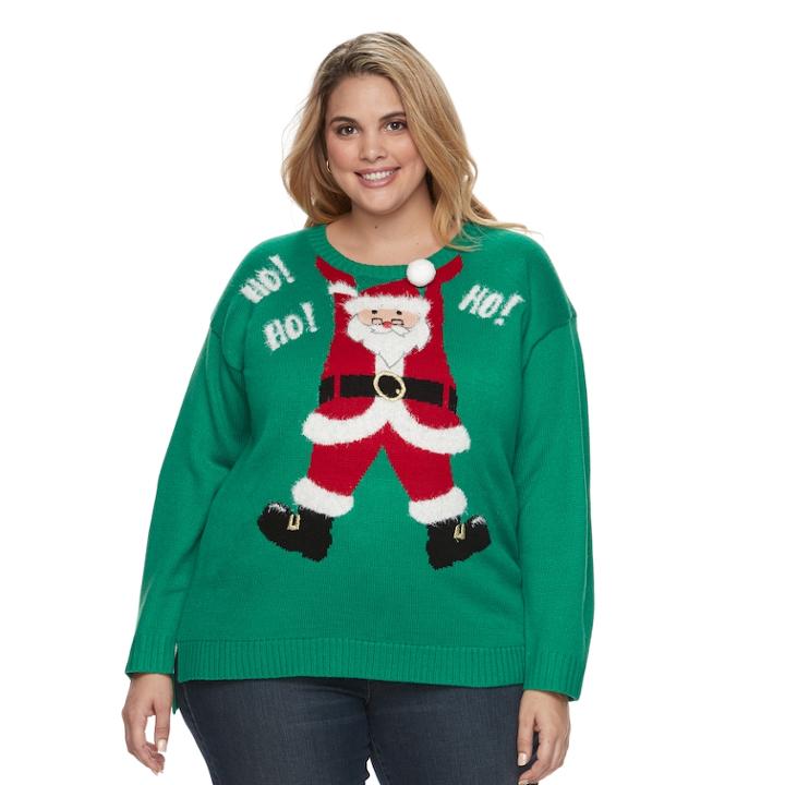 - Plus Size Fashion Avenue Us Sweaters Applique Ugly Christmas Sweater, Women's, Size: 1xl, Med Green