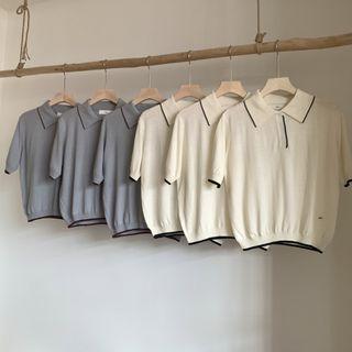 FalsucountPolo Short-sleeve Plain Knit T-shirt