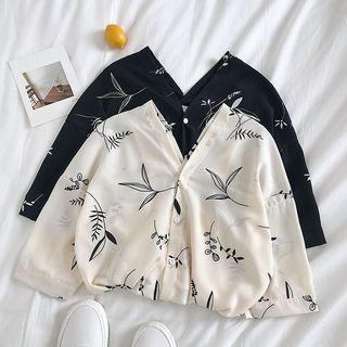 DiyiPrint V-neck Loose-fit Cropped Blouse